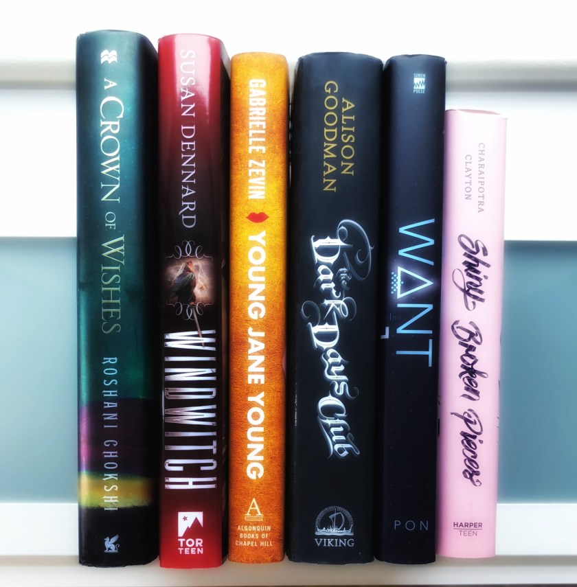 A Crown Of Wishes (The Star-Touched Queen #2) | Windwitch (The Witchlands #2) | Young Jane Young | The Dark Days Club (Lady Helen #1)| Want (Want #1)| Shiny Broken Pieces (Tiny Pretty Things #2)