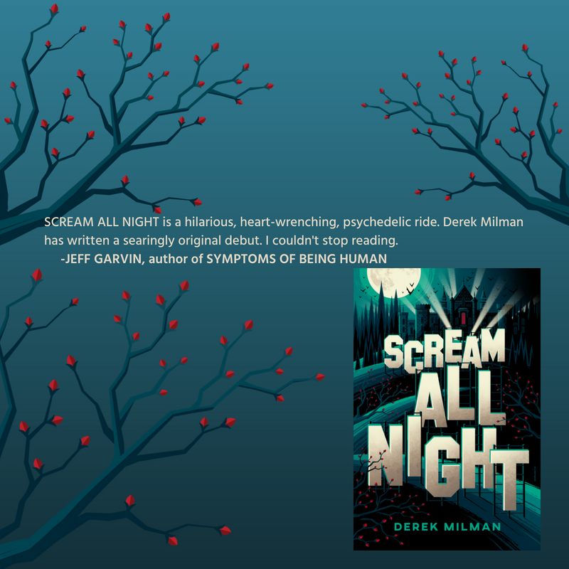 Scream All Night is one of those books that has a personality all of its own. Quirky, odd, sad, and a times very funny all rolled into one bringing the setting of Moldavia studios to life. Our MC Dario Heyward has very mixed feelings on his childhood growing up as the son of Moldavia Studio’s infamous owner/producer. Cast as Alastair the star on one of his father’s B-Horror flicks, Dario was subjected to physical violence and even emaciation at the hands of his dad. At the age of 12 after having his last near death scare, Dario decided to put distance between him and his abusive father. His father is a perfectionist and there really aren’t any boundaries he wouldn’t cross for one of his creature features. Dario is emancipated & living in a group home where he is trying to live his life away from all things Moldavia. This all changes of course when his brother Oren calls him with an invitation to Moldavia for a ceremony (being vague here cause spoilers haha!) taking place for his father & Dario wants nothing to do with it. Since his departure from Moldavia as a child, Dario has grown leaps & bounds and knows that accepting means the possibility of getting sucked back in to the world that is Moldavia studios. Perhaps because he still has some unfinished business, he accepts and sure enough finds himself sucked in by the Moldavian castle & its inhabitants who are all family to him. Although Dario has cut off all ties to Moldavia, its the people he got to know there while growing up that he is still attached to. He may not be prepared for what is asked of him but ultimately Dario is a much better man than his father. Scream All Night is a book about getting closure and new beginnings. It’s about grieving someone when they are still alive and it’s about second families, those we make along the way & those that take us in as if one of their own.